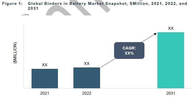 The global binders in battery market is projected to reach $6,057.1 million by 2031 from $2,265.9 million in 2022, growing at a CAGR of 11.54% during the forecast period 2022-2031.