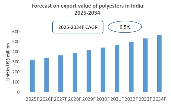 Chart Forecast for the Export of Polyesters in India (2025-2034)