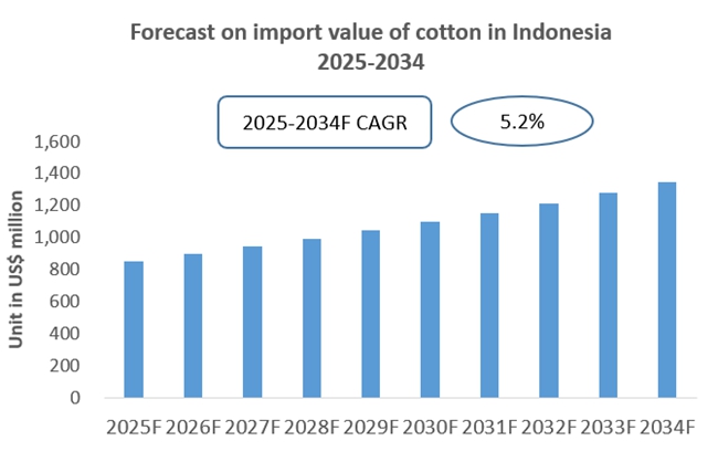 Chart Forecast for the Import of Cotton in Indonesia (2025-2034)