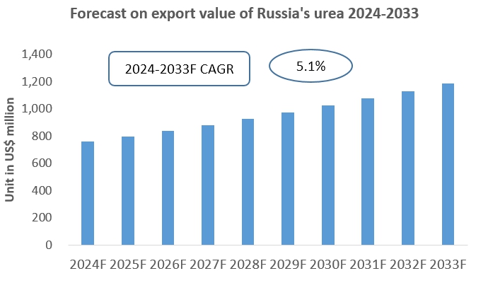 Chart Forecast for the Export of Urea in Russia (2024-2033)
