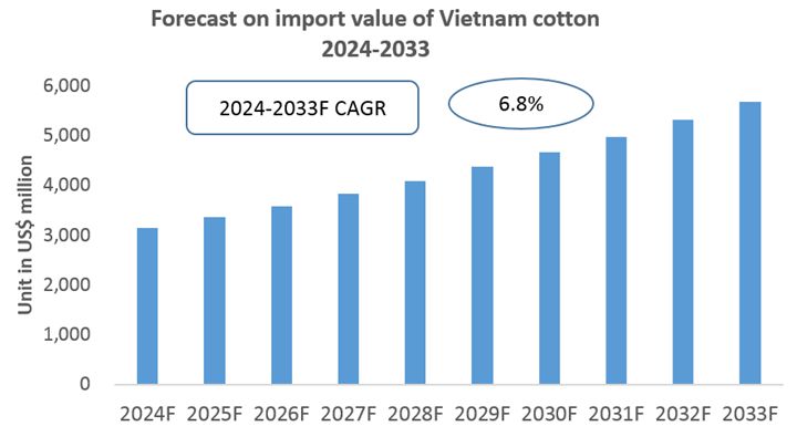 Chart Forecast for the Import of Cotton in Vietnam (2024-2033)